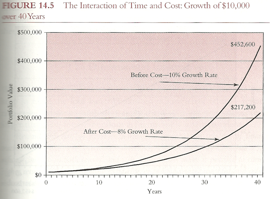 Terrorífico. Si dos personas de 25 años invierten hoy en dos productos distintos la cantidad de 10000$, y uno de ellos selecciona un fondo con una comisión un 2% menor, el premio final el día de su retiro sería haber conseguido más del doble del capital acumulado por su compañero de fatigas.