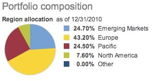 Con este nuevo ETF, los inversores que gustan de los índices y las carteras globales están de enhorabuena, ya que resulta el complemento perfecto para los geniales ETFs que Vanguard propone para replicar al mercado americano. Su precio es de risa, con una comisión de gestión de tan sólo el 0,20%, un 86% inferior a la media de los fondos de la misma categoría (1,39%). Es más barato que el VEU (0,25%) y más diversificado, ya que al incluir las acciones de mediana y pequeña capitalización, contiene más de 6400 acciones en su cartera